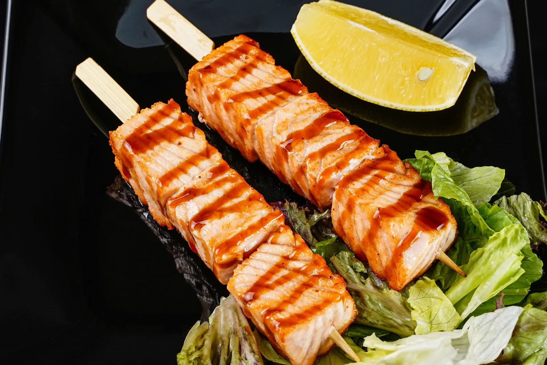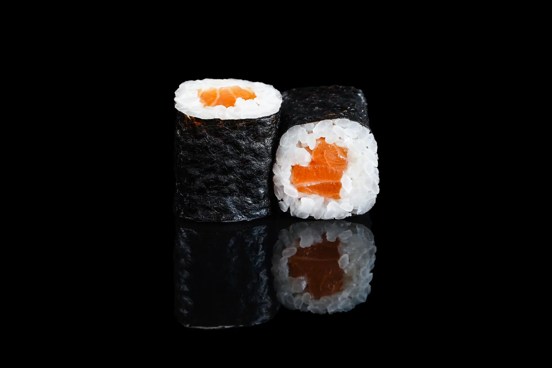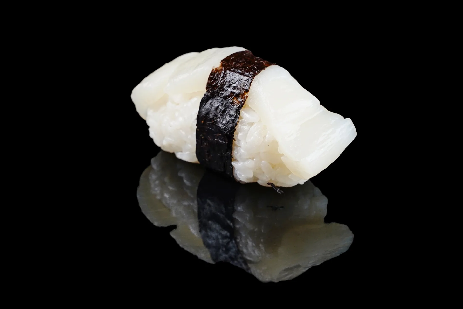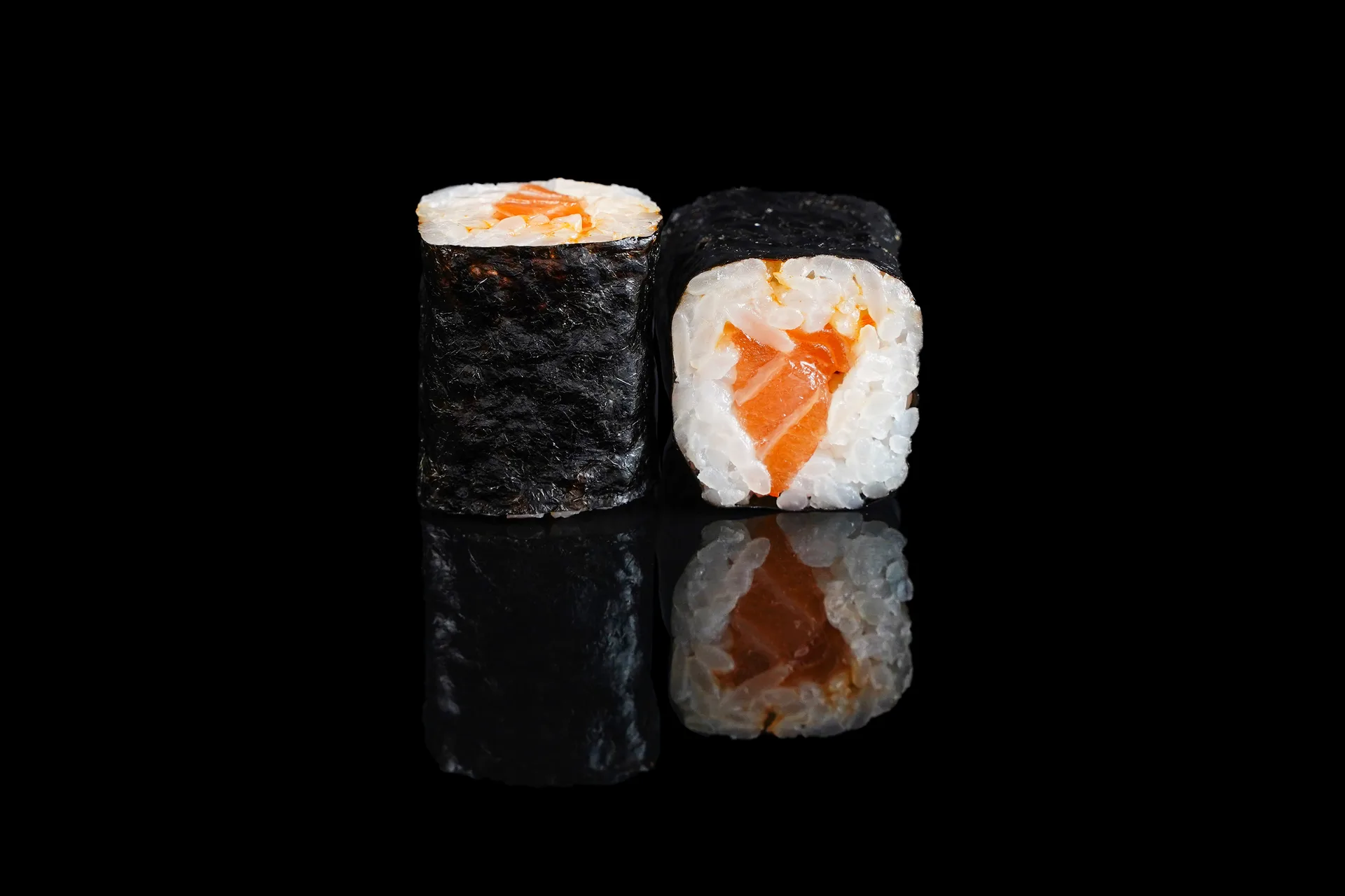 Лосось, гребешок, икра Тобико, огурец, майонез.