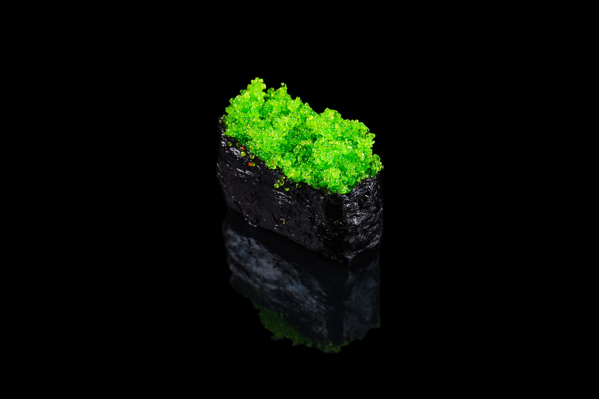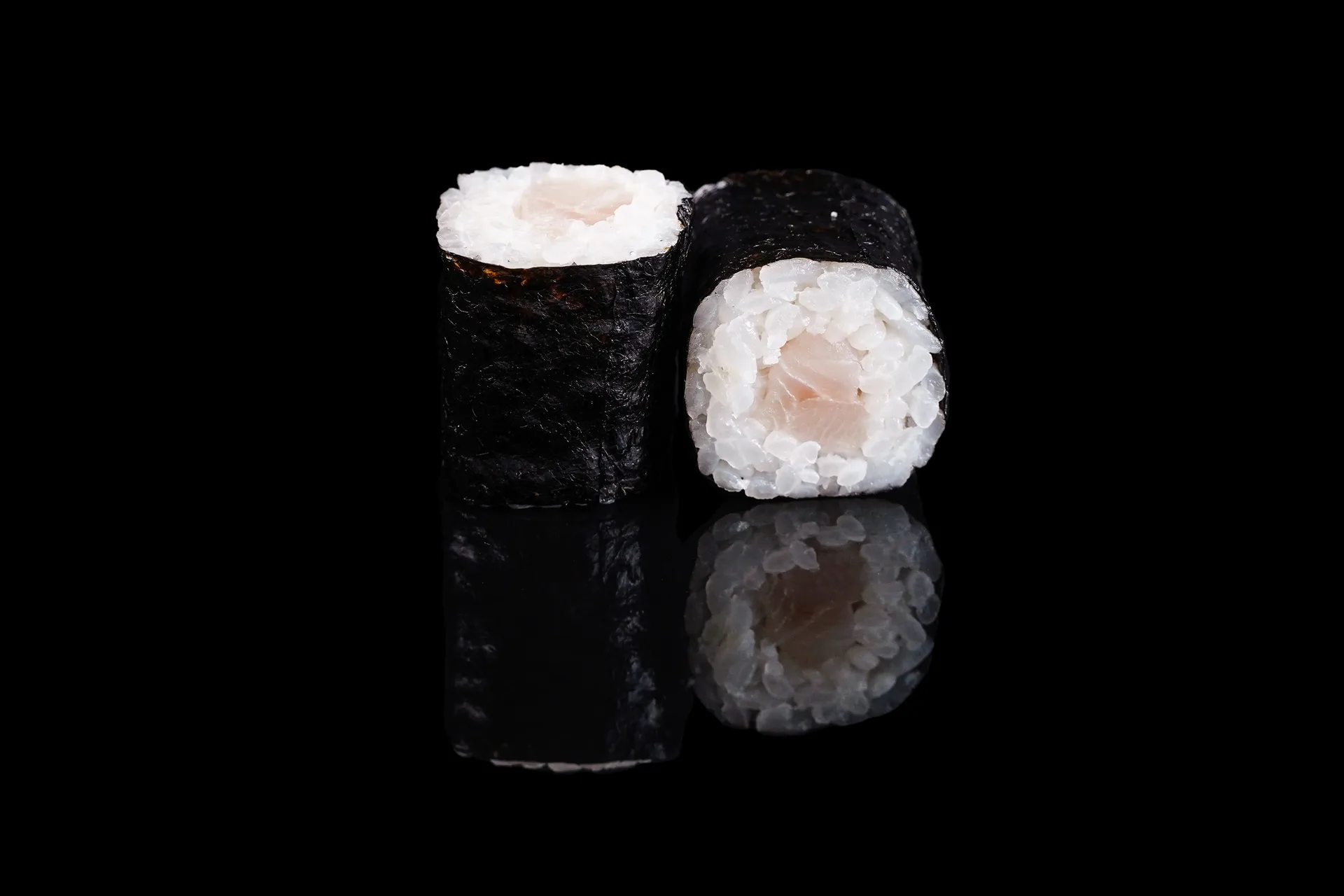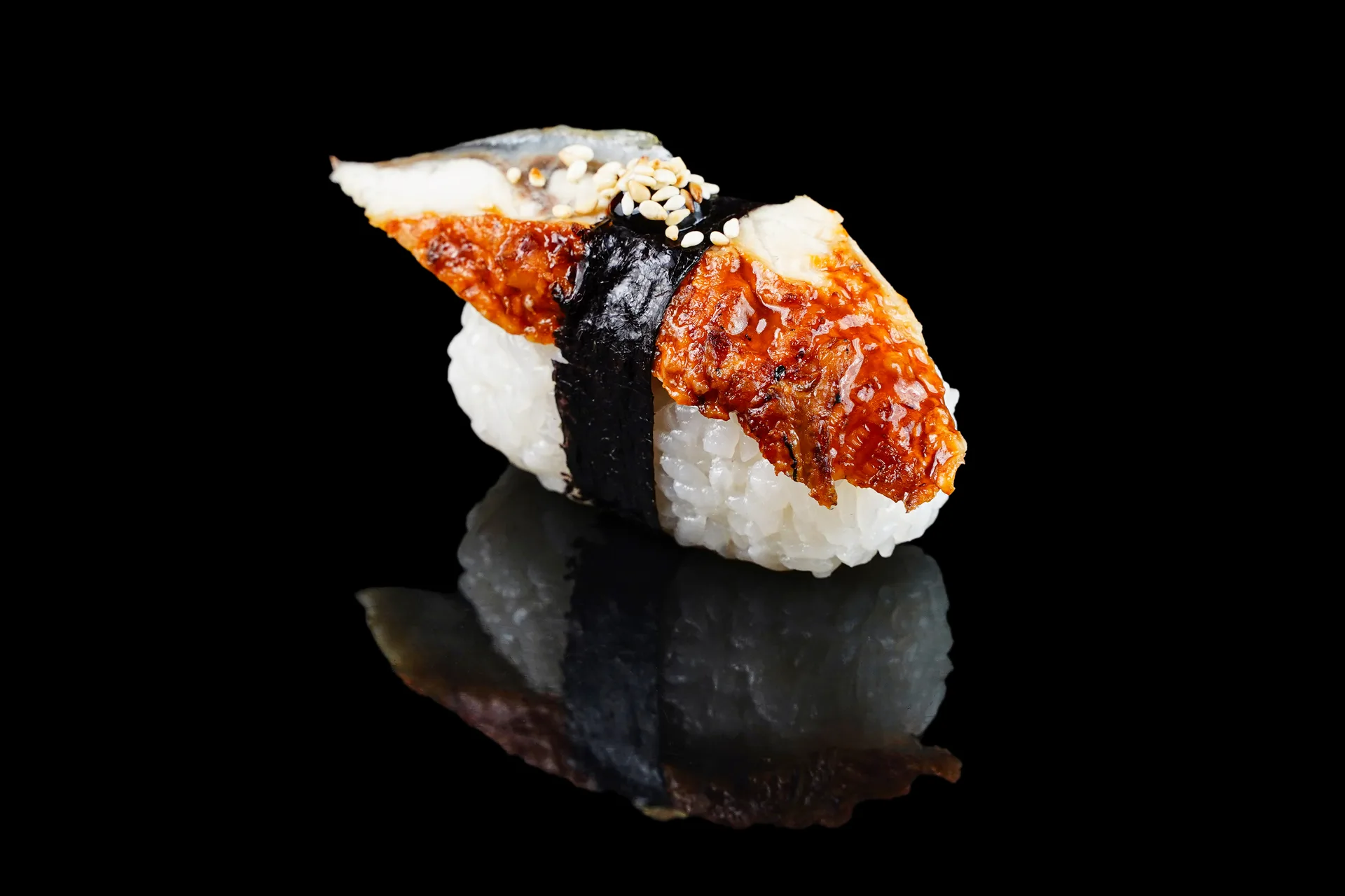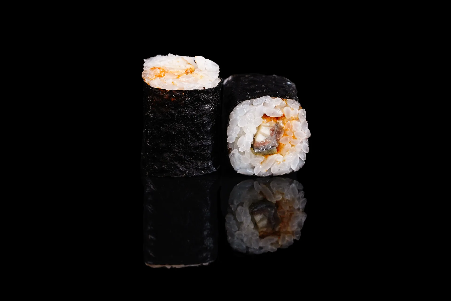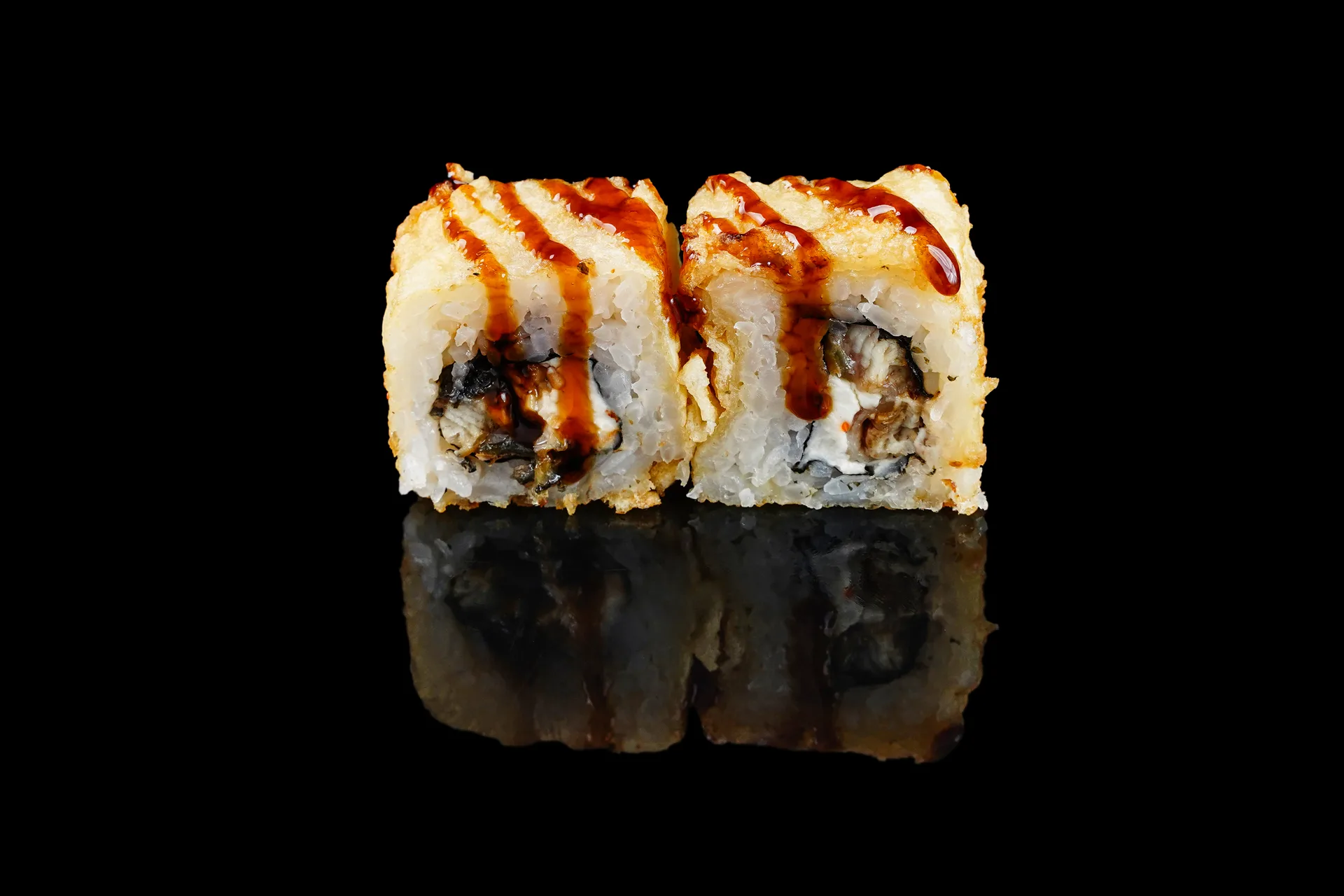 Угорь, гребешок, икра Тобико, огурец, майонез.