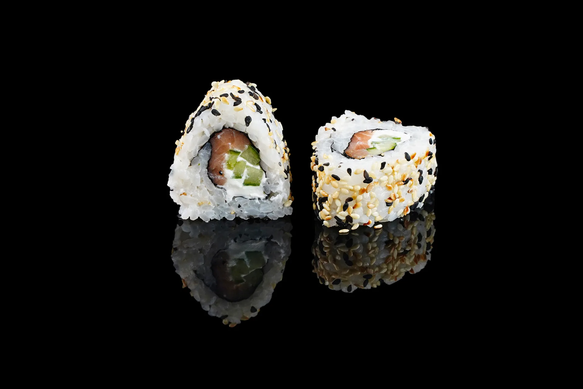 Лосось копченый, огурец, сыр сливочный, кунжут